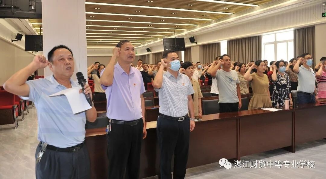 大会在庄严肃穆的国歌声中拉开帷幕。尤祖国副校长带领全体党员进行庄严宣誓,重温入党誓词。