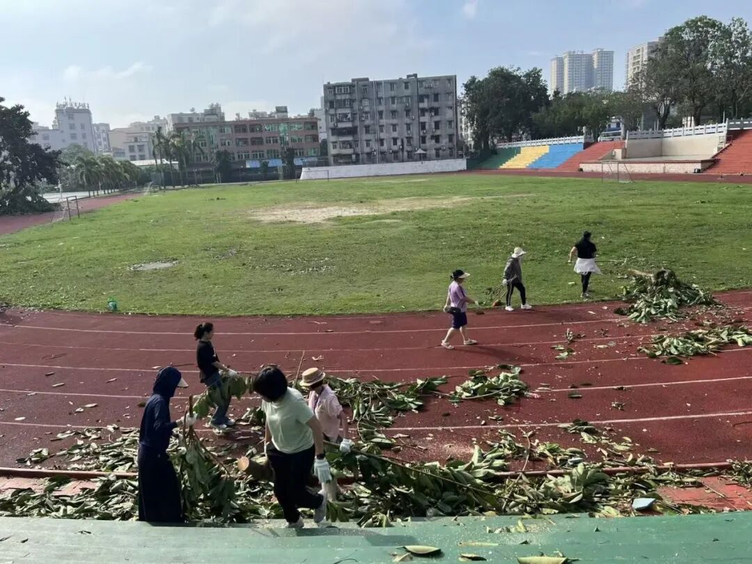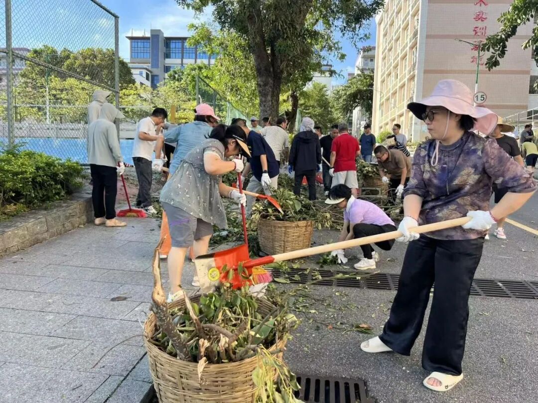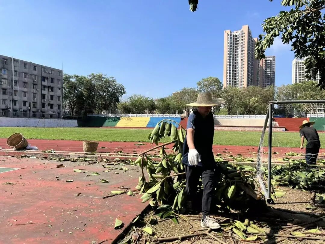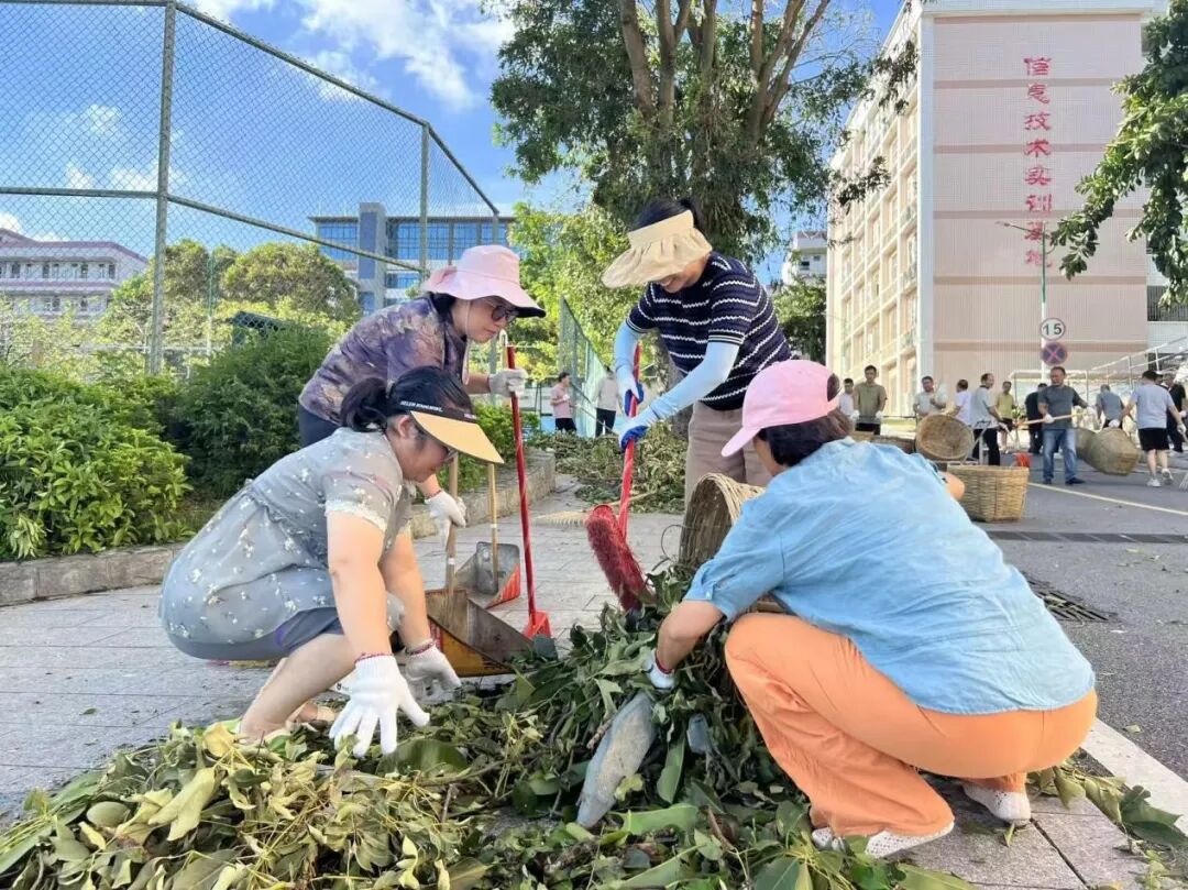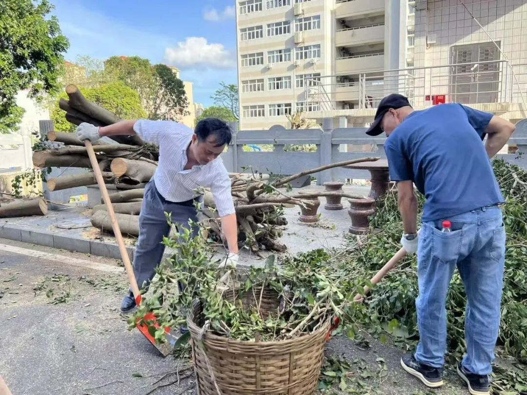 10月6日,正值阖家团圆的中秋佳节,学校领导班子带领中层干部放弃休假,主动投身校园清障一线。面对倒伏在道路中央、阻碍通行的树木,大家齐心协力、分工协作,有的锯断枝干,有的搬运残木,有的清理碎石,用实干代替团圆,用汗水打通校园通行“生命通道”。在全力校内清障的同时,学校坚持救灾复产内外兼顾,洪伟欣校长亲自带领学生科、基础教育科全体教职工同步前往沙墩村学智路积极开展卫生行动,清运垃圾、整治环境,以实际行动践行社会责任。全体人员以高度的责任与担当,共同诠释了教育工作者的奉献精神。