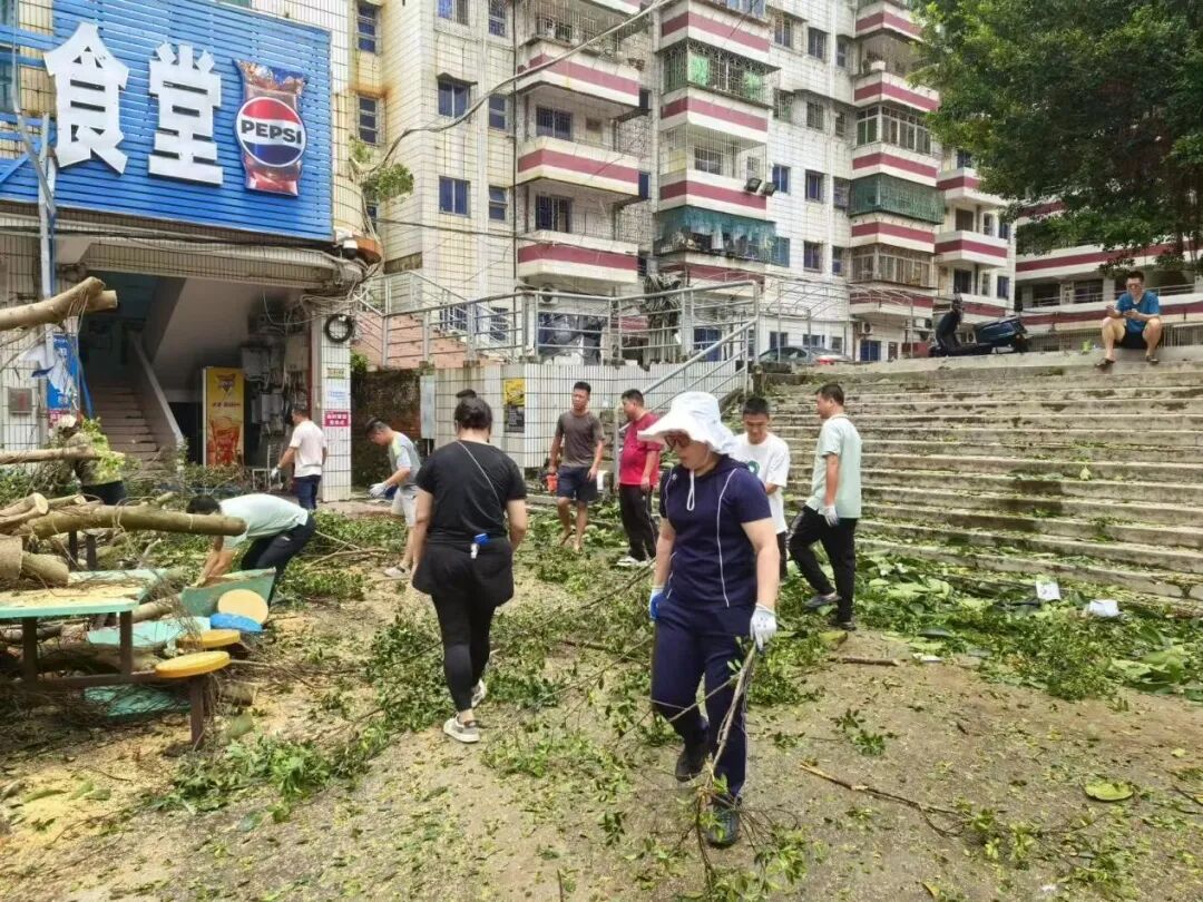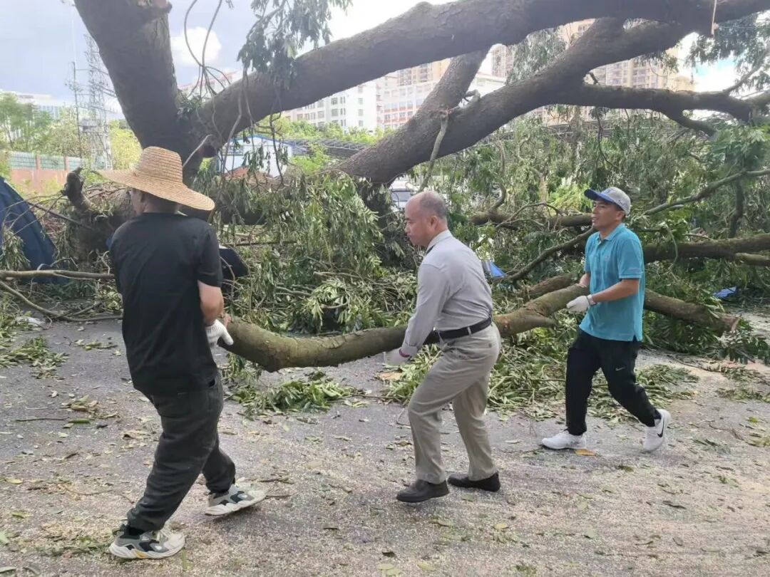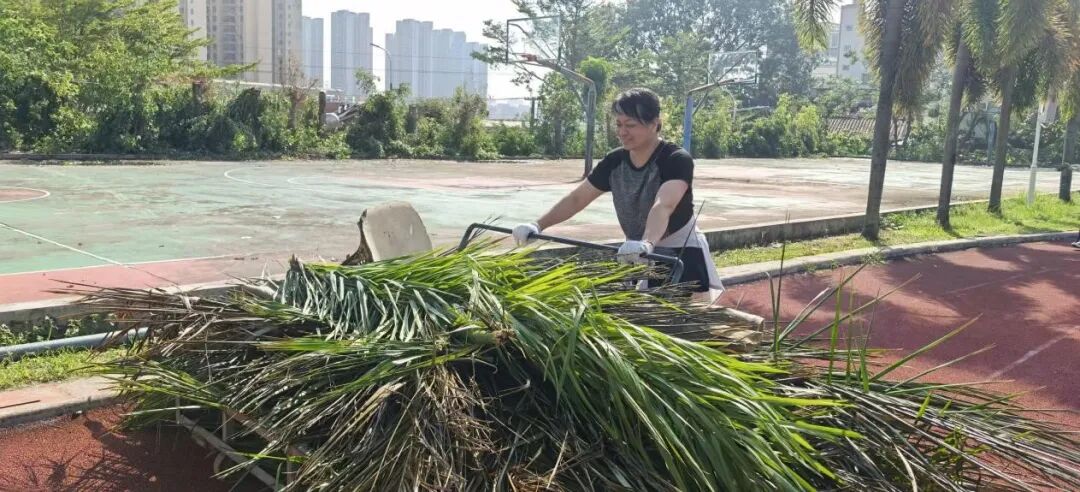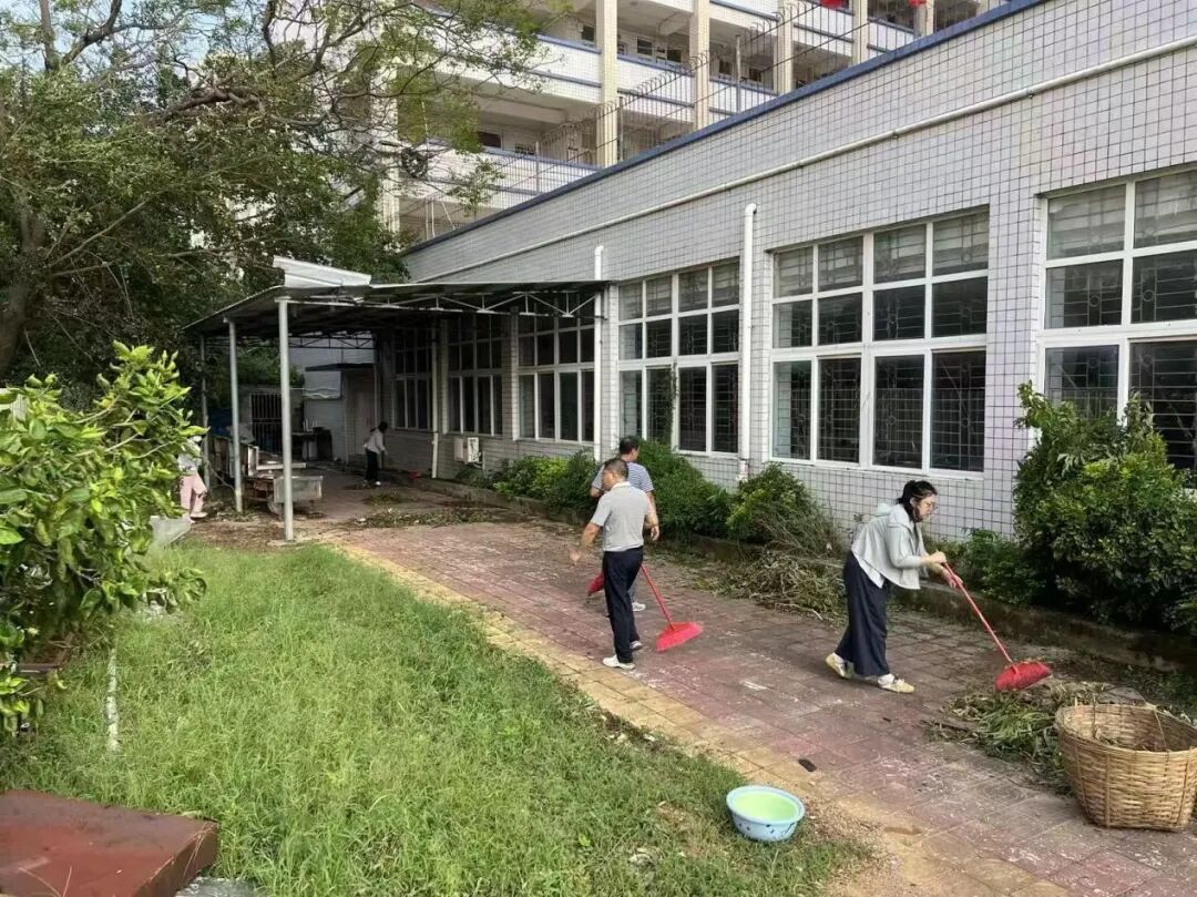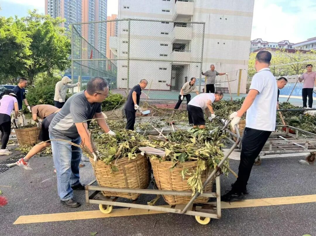 10月6日,正值阖家团圆的中秋佳节,学校领导班子带领中层干部放弃休假,主动投身校园清障一线。面对倒伏在道路中央、阻碍通行的树木,大家齐心协力、分工协作,有的锯断枝干,有的搬运残木,有的清理碎石,用实干代替团圆,用汗水打通校园通行“生命通道”。在全力校内清障的同时,学校坚持救灾复产内外兼顾,洪伟欣校长亲自带领学生科、基础教育科全体教职工同步前往沙墩村学智路积极开展卫生行动,清运垃圾、整治环境,以实际行动践行社会责任。全体人员以高度的责任与担当,共同诠释了教育工作者的奉献精神。
