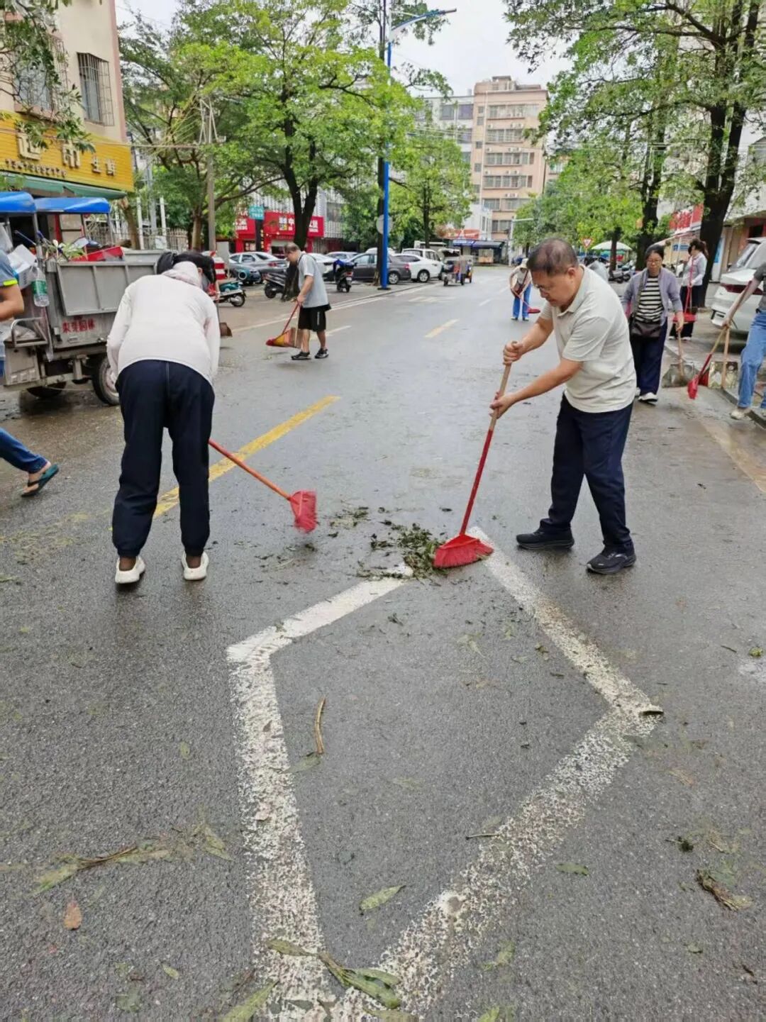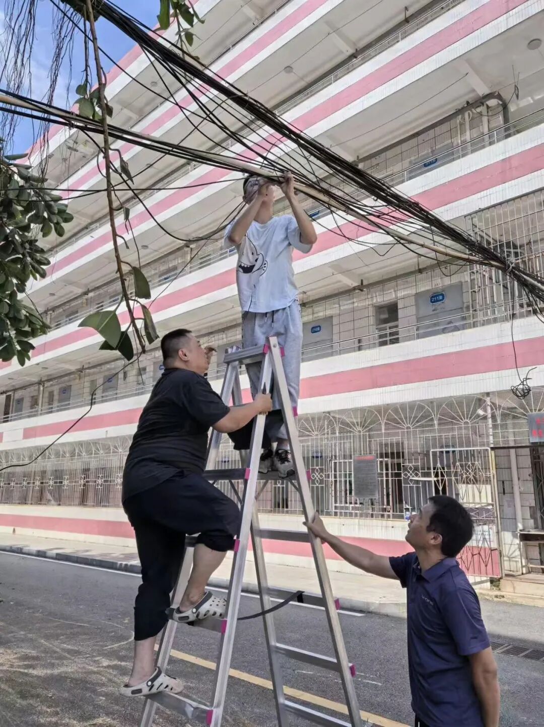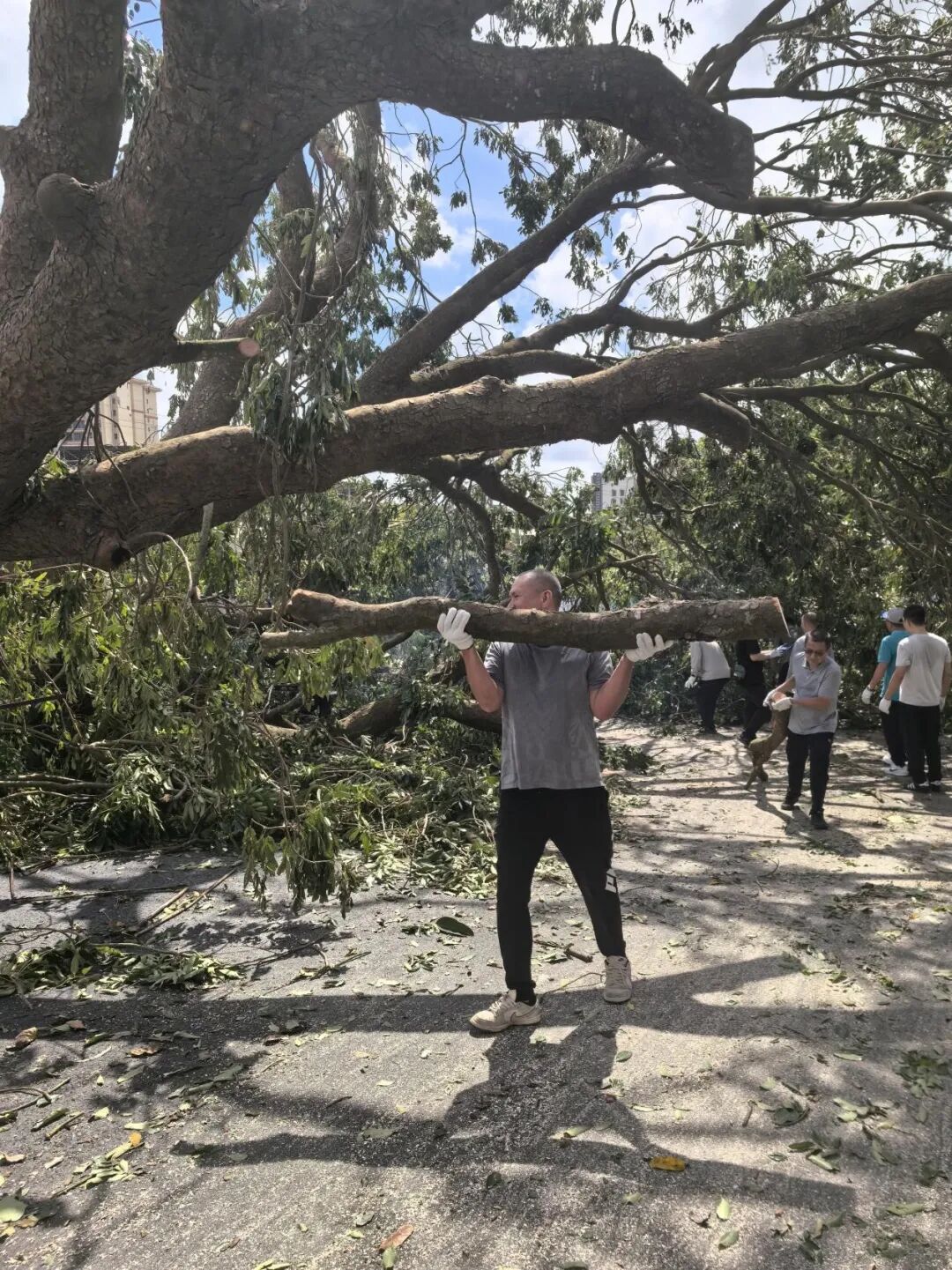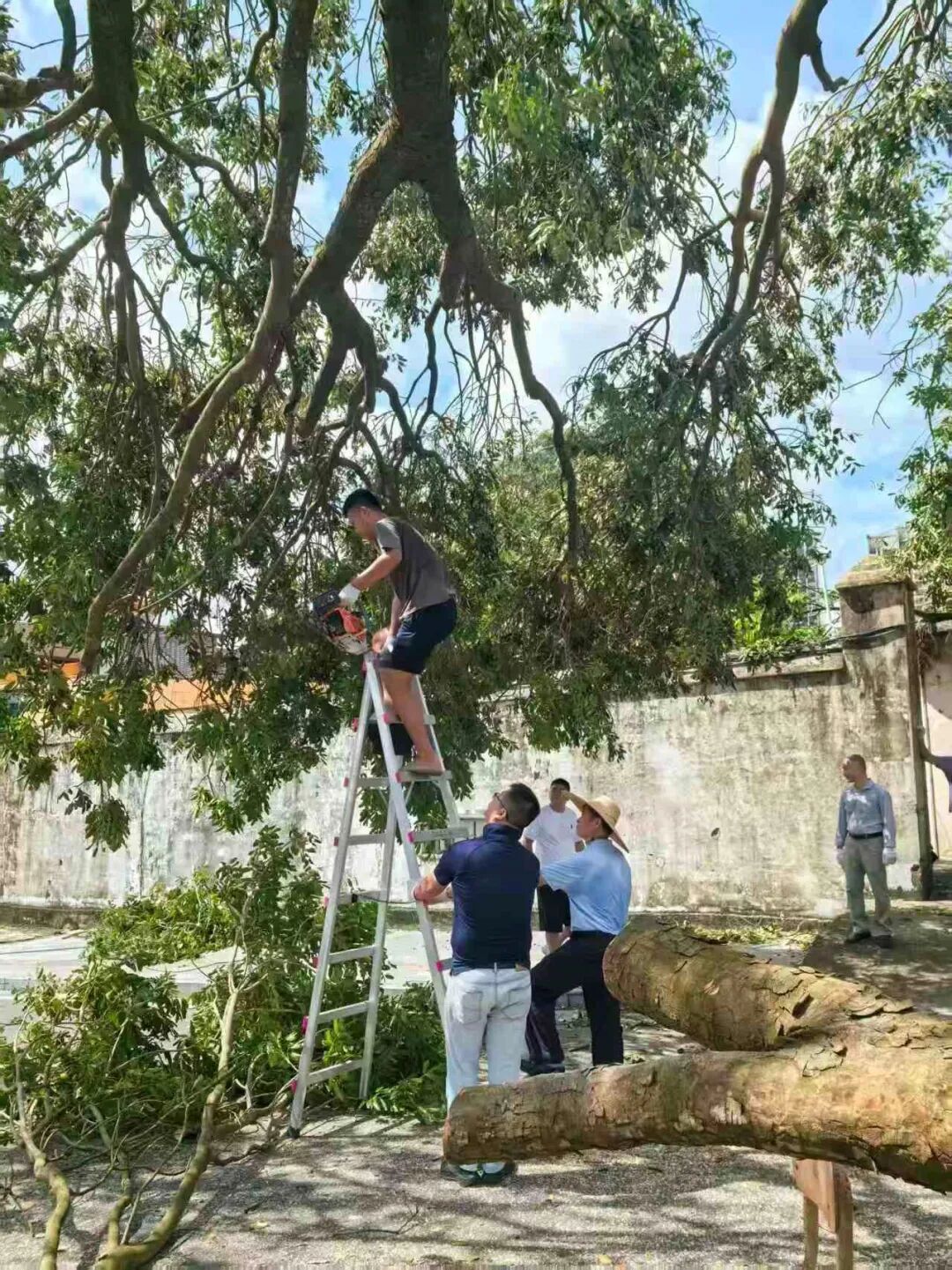 10月6日,正值阖家团圆的中秋佳节,学校领导班子带领中层干部放弃休假,主动投身校园清障一线。面对倒伏在道路中央、阻碍通行的树木,大家齐心协力、分工协作,有的锯断枝干,有的搬运残木,有的清理碎石,用实干代替团圆,用汗水打通校园通行“生命通道”。在全力校内清障的同时,学校坚持救灾复产内外兼顾,洪伟欣校长亲自带领学生科、基础教育科全体教职工同步前往沙墩村学智路积极开展卫生行动,清运垃圾、整治环境,以实际行动践行社会责任。全体人员以高度的责任与担当,共同诠释了教育工作者的奉献精神。