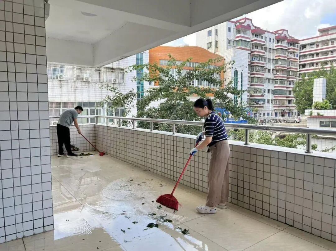 10 月 8 日,全体教职员工合力返校,加入校园灾后重建队伍。从清理绿化带杂物,到擦拭教学设施,再到协助检修公共区域设备,大家不怕苦、不怕累,各司其职又互帮互助,在劳动中展现出极强的凝聚力与向心力。这份 “心往一处想、劲往一处使” 的集体主义精神,成为灾后恢复的 “强心剂”,大家用双手重建校园,用毅力守护师生安全,为快速恢复正常教学秩序筑牢了坚实防线。