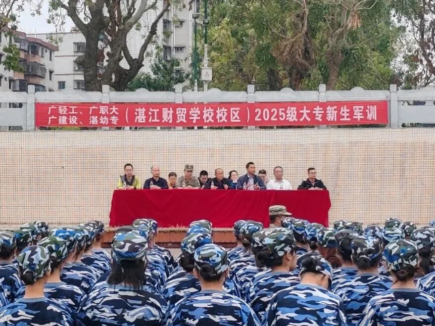 10月25日上午,阳光明媚,秋高气爽。位于湛江财贸学校校区的广轻工、广职大、广建设和湛幼专等四所高职院校2025级350名大专新生,在经历了为期14天的严格军事训练后,隆重举行了军训总结大会。我校副校长陈永东、学生科科长杨智伟出席大会,共同检阅新生军训成果。