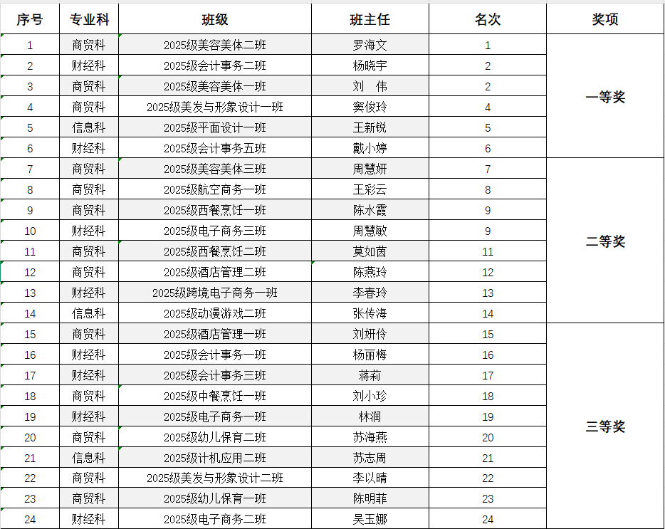 比赛获奖班级名单
