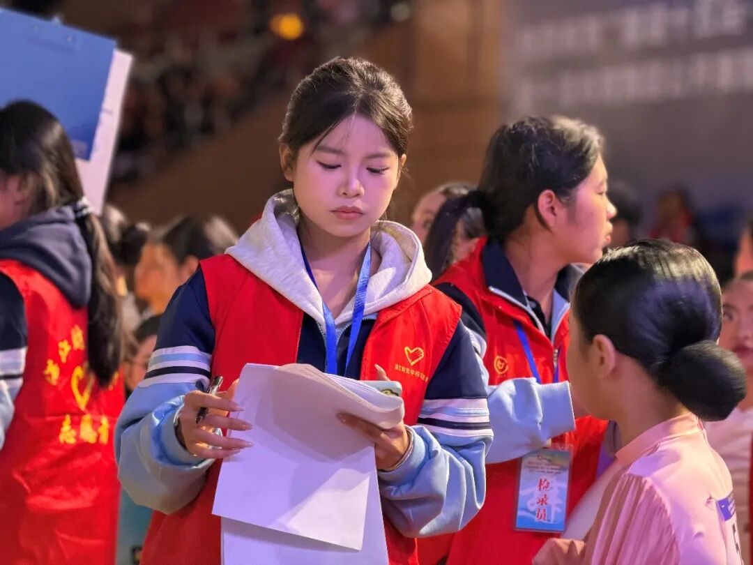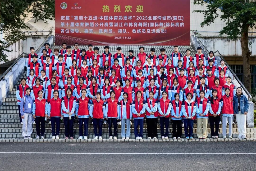 2025年11月22日,“喜迎十五运·中国体育彩票杯”北部湾城市(湛江)第十届体育舞蹈公开赛在湛江市体育中心体育馆华彩绽放。在这场汇聚激情与优雅的体育盛宴中,一抹由我校102名学子绘就的“志愿红”,以其专业的素养、温暖的笑容和全情的投入,成为了赛场最动人的风景线。他们用“用心服务”的实际行动,完美诠释了我校青年的责任与担当。