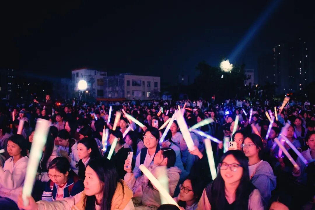 声乐协会的歌曲串烧唱出青春张扬,台下荧光棒跟随韵律摇动,俨然小型演唱会现场。