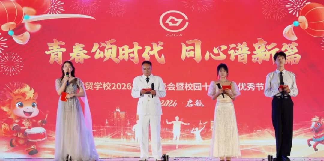 晚会伊始,洪伟欣校长登台致辞,回顾2025年学校在教学、竞赛、校企合作等方面取得的丰硕成果,尤其提到学校以“良好”等级通过广东省高水平中职学校期满验收,引来全场掌声。校长勉励全体师生继续同心奋进,谱写学校高质量发展新篇章。