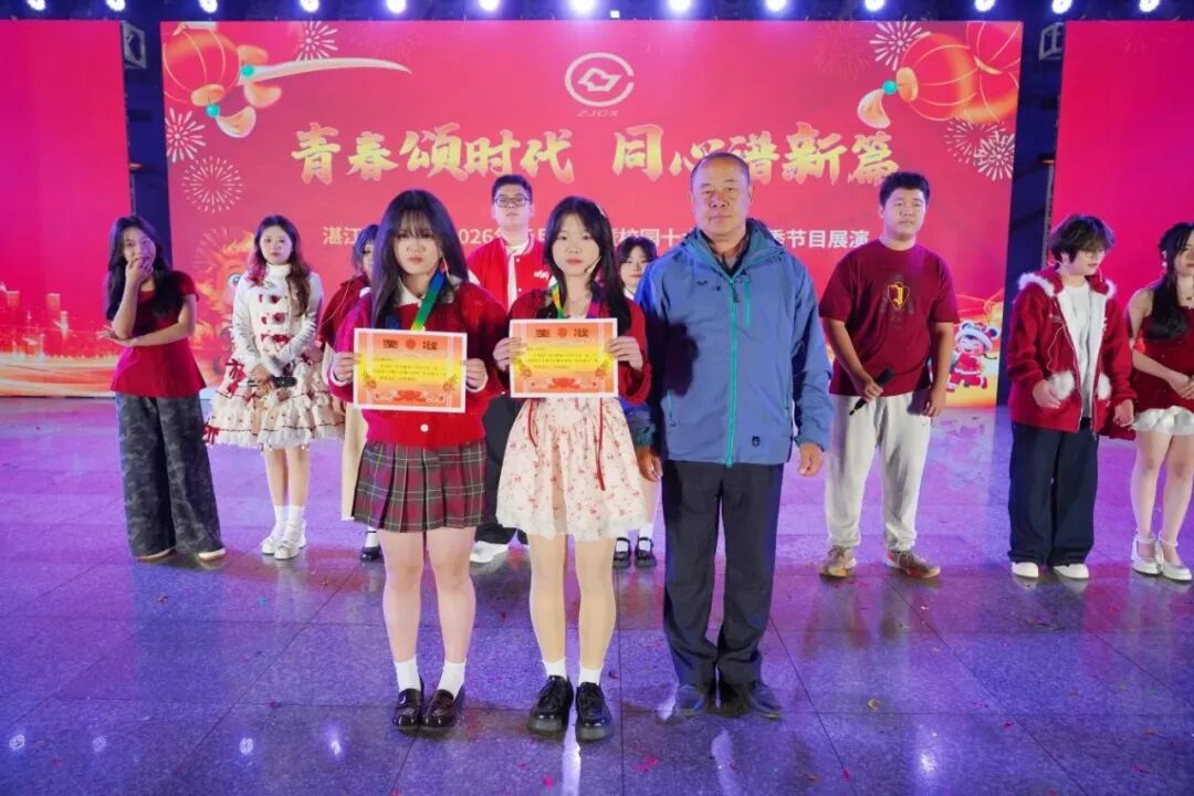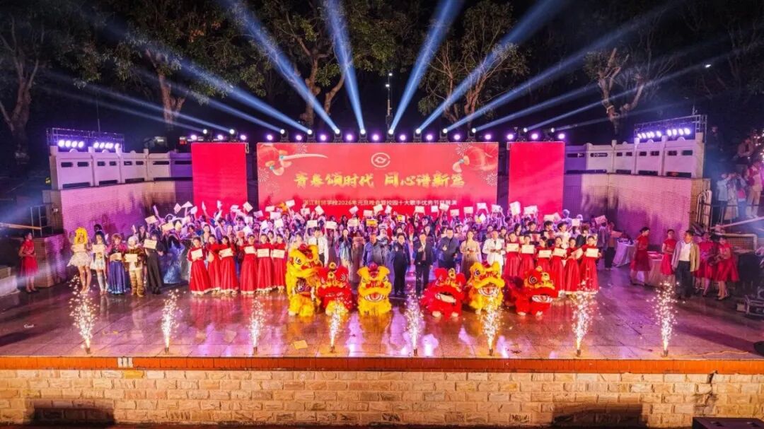 岁末不见寒意,只见湾湾热情。12月29日晚,我校校园内灯光璀璨、欢声笑语,以“青春颂时代、同心谱新篇”为主题的2026年元旦文艺晚会高能上演。学校领导、全体师生欢聚一堂,在歌舞诵读中辞旧迎新,共同展望充满希望的2026年。