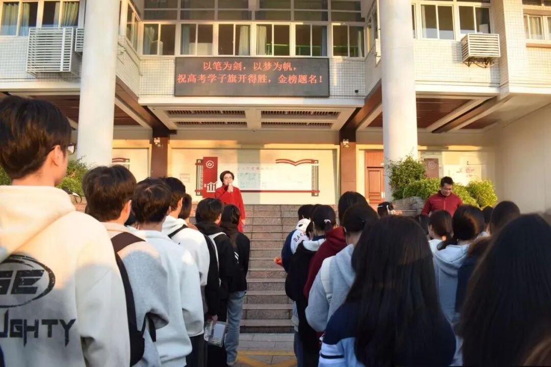 洪伟欣校长用她铿锵有力的讲话为考生们加油助威。“三年磨一剑,今朝试锋芒!”洪校长用这句话勉励全体考生,要以自信的姿态走进考场,以从容的心态应对挑战,相信自己的努力终将收获硕果。饱含殷切的期盼和有力的鼓舞字字句句,让现场响起阵阵掌声,也让考生们的信心更加坚定。