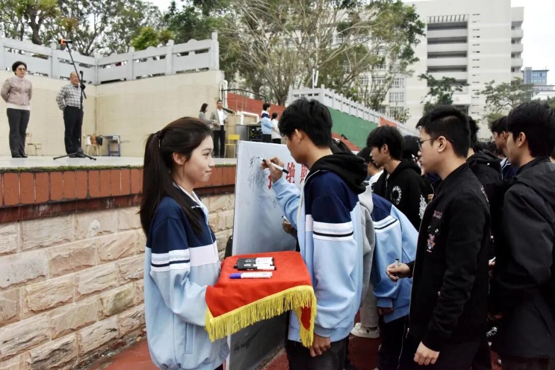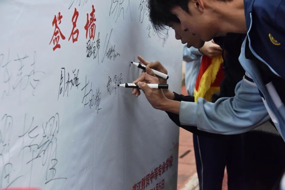 宣誓结束后,各班级代表依次有序地在“拒绝欺凌,从我做起”主题签名墙上郑重签下自己的名字。一笔一划不仅是对拒绝欺凌的郑重承诺,更是对守护校园安全的责任担当。