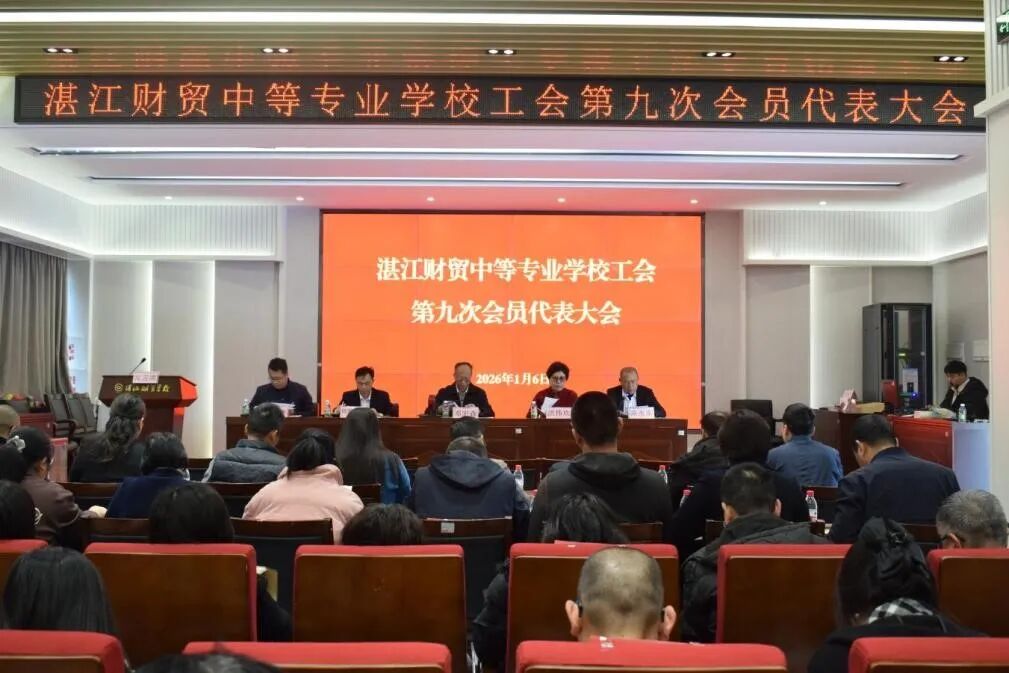 2026年1月6日下午,学校工会第九次会员代表大会在学术报告厅隆重召开。第九届教职工代表大会代表齐聚一堂,共商学校工会发展大计,圆满完成工会换届选举工作。大会由党委委员、副校长陈永东同志主持,非教代会代表的中层干部列席本次大会。