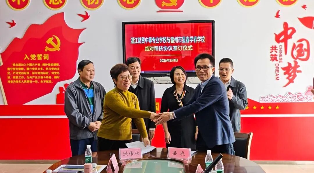 2026年2月1日,阳光正好,我校校长洪伟欣带领团队奔赴雷州市显春学校,开启了一场意义非凡的结对帮扶之旅,不仅签订了结对帮扶协议,还开展了丰富多彩的职业启蒙活动,为两校合作发展注入了新的活力。