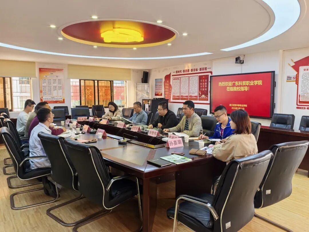 为响应职业教育高质量发展号召,深化中高职贯通培养机制,3 月 11 日下午,广东科贸职业学院餐旅学院党总支副书记汤尊成率专业教师团队赴我校开展交流活动。我校党委委员、副校长施长样携相关科室负责人、骨干教师热情接待,双方围绕专业共建、人才共育、政策衔接等核心议题展开全方位探讨。