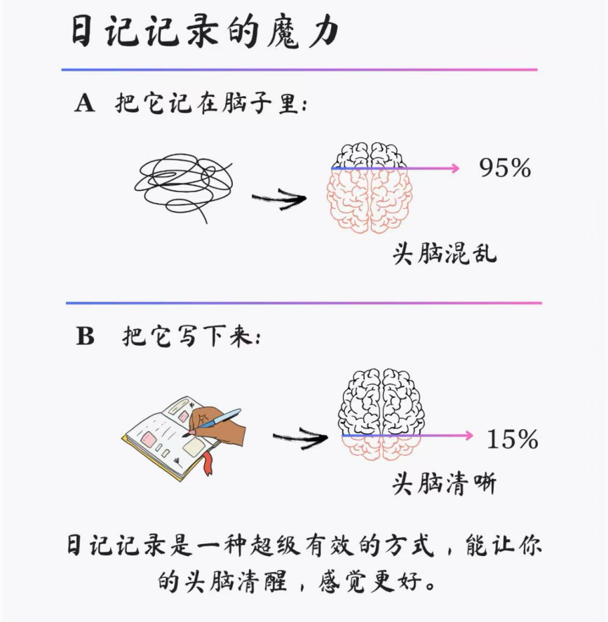 我们可用写下情绪的方式,如情绪日记,它是一种简单而实用的调节情绪的方法,有意识的去观察自己的感受,并通过文字梳理情绪。这是一种自我疗愈最简单却最有效的方式。