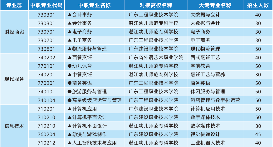 以上职教高考班招生专业及招生人数以2026年湛江市教育局批复为准。